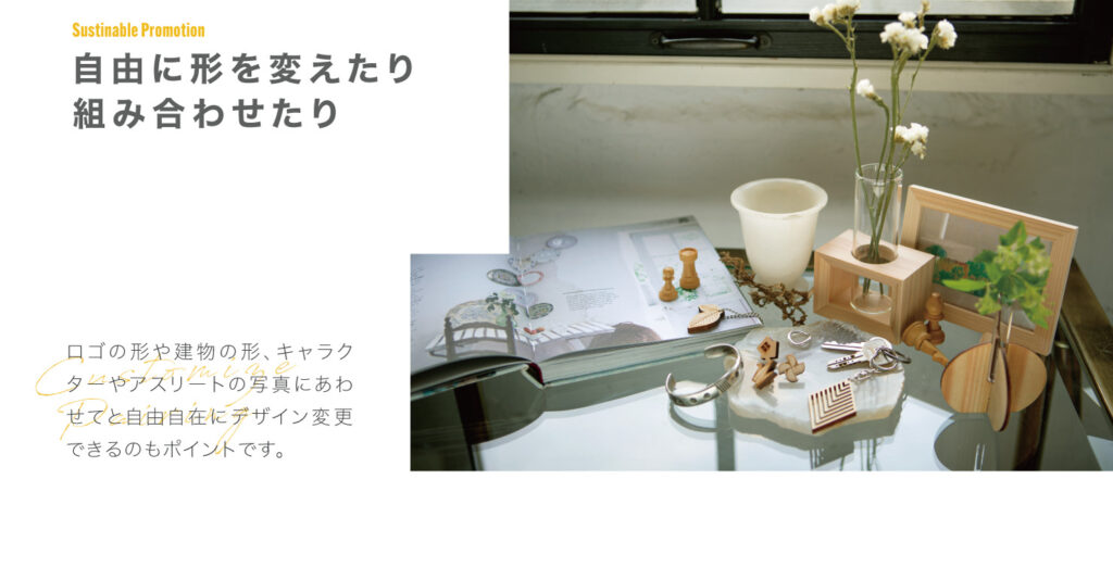 すべてのアイテムが国産の間伐材を利用していて、使うことで日本の森が守られます。