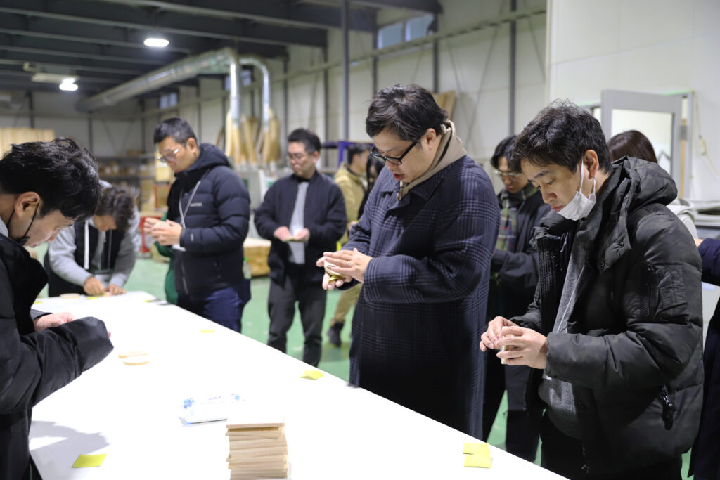 そして、私たちフロンティアジャパン檜原工場でのコースター作りへ