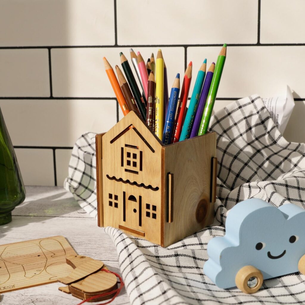 ・木のペン立てはとても活用しています!同じシリーズでいろいろあったらかわいいなと思います。