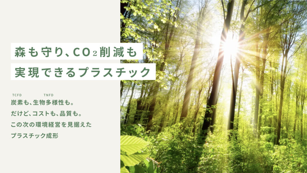 いま、御社で樹脂成形で何かしらのグッズや備品などをお作りであれば、これにそれを置き換えることで、一気にサスティナブルに対応できます。TNFDにもガッチリ!