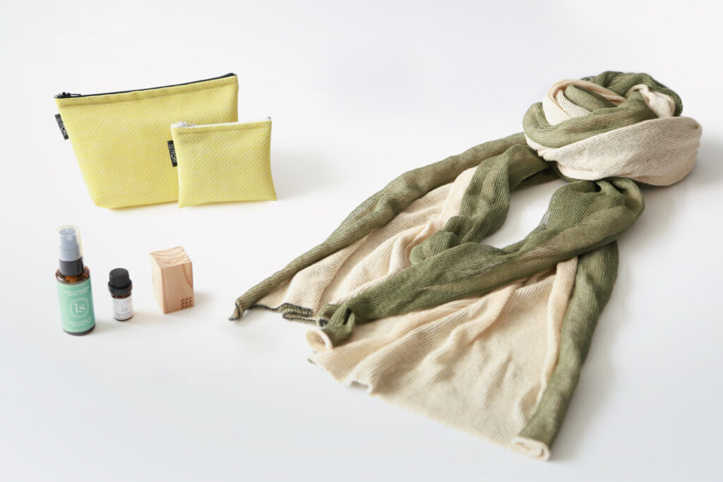 2024年の株主優待では、滋賀県近江八幡市にある滋賀工場にて制作したチェア張地の端材を使用したポーチ、淀川水系(琵琶湖・淀川)に生息している葦と和紙から作られた糸を使用したストール、家具の展示会ブースにて使用した構造材の端材(ヒノキ)を利活用し、アップサイクルされたアロマウッドなどを詰め合わせた、サスティナブルギフトセットを株主優待品としました。