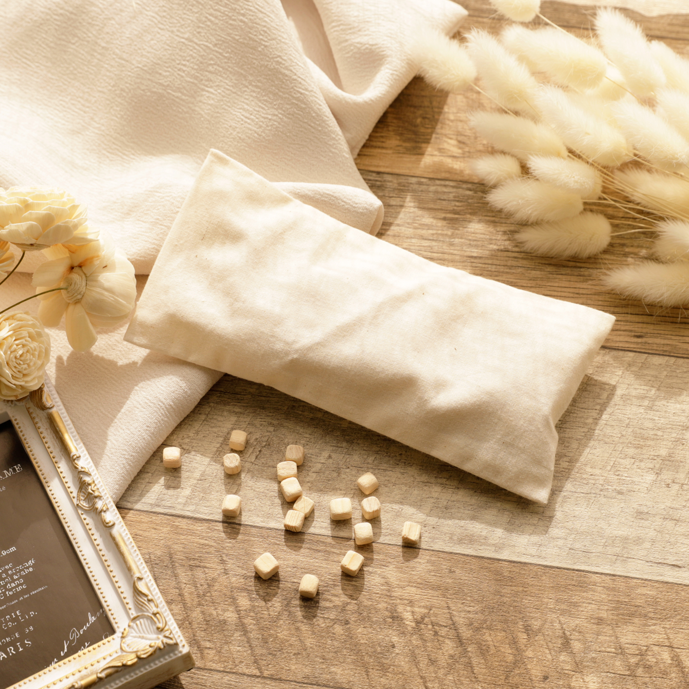 電子レンジで温めるとヒノキの香りが引き立つ、ほんのり温かいアイピローに。お休みタイムのお供にもぴったり。