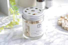 フレグランスボトルの木粒は開けた後で香りがしなくなってもアロマオイルを少し垂らすだけで香りが長続き。樹齢100年以上の100年ヒノキからつくるエッセンシャルオイルをセットにすればさらに喜ばれるノベルティグッズになります。