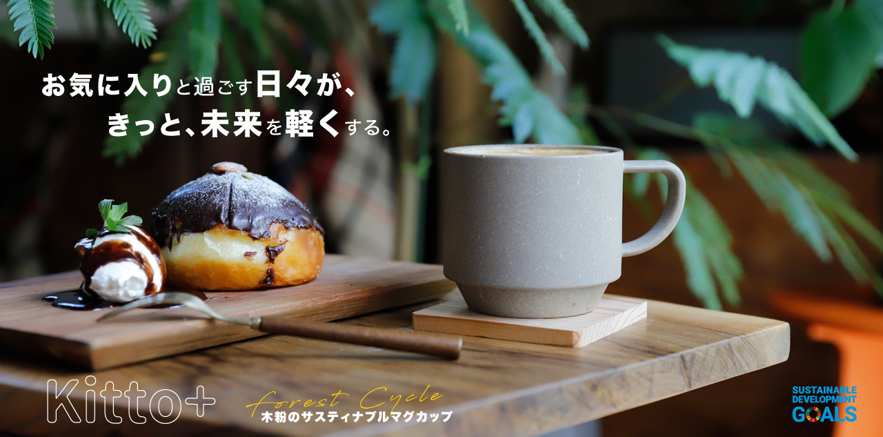 Kitto+ 木粉のタンブラーは、わたしたちが木製品(ノベルティや記念品など)をつくるときにどうしても出てしまう端材や、おがくずといった捨ててしまっていた木をつかってつくる木のプラスチックです。