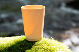 プラスチックに木を混ぜたタンブラーだから落としても割れにくく、食洗機にも耐熱試験は問題なし!木を混ぜているから商品の中に炭素を固定してCO2を削減できるからESG経営の取り組みにもしっかりと貢献します。