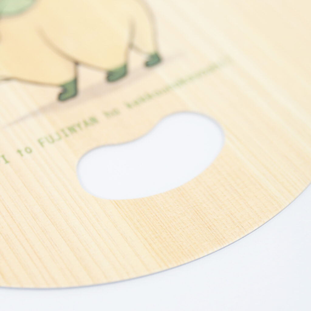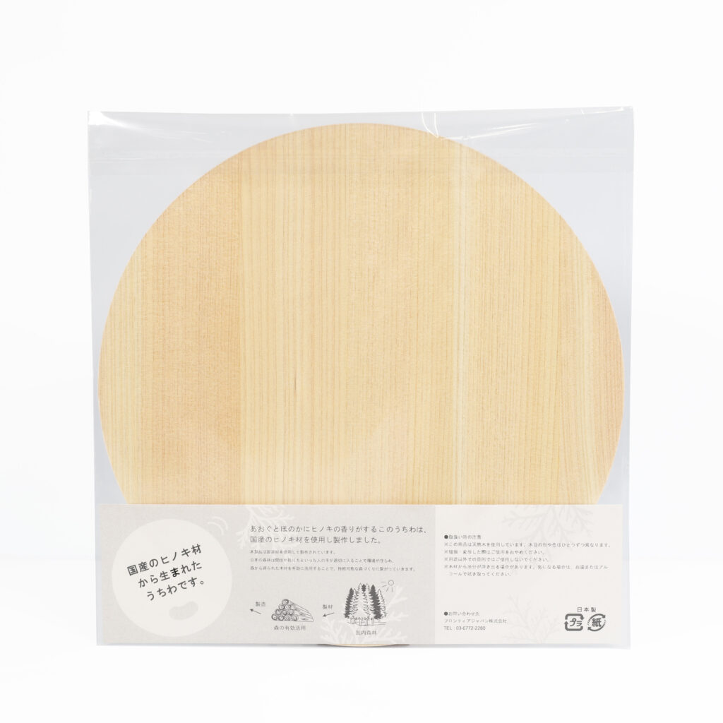 ヒノキの薄板シートと厚紙を貼り合わせた独自素材を使用したうちわは、軽量で配布しやすく、自然素材ならではの上質感を備えています。視覚だけでなく触覚や嗅覚にも訴求できるため、体験価値の高いプロモーションが可能です。