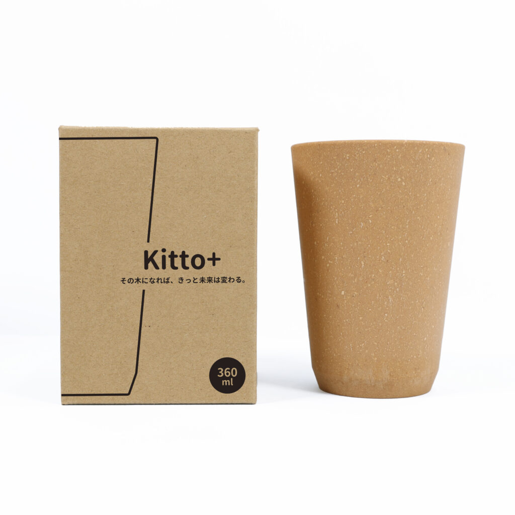 木工加工の際に生まれる木くずを51%、PPTを49%配合した木製プラスチック素材から生まれたタンブラーは、環境配慮と実用性を兼ね備えたアイテムです。木の質感を感じられるやさしい見た目が、ブランドのナチュラルな印象や取り組みをさりげなく伝えます。